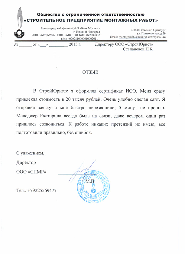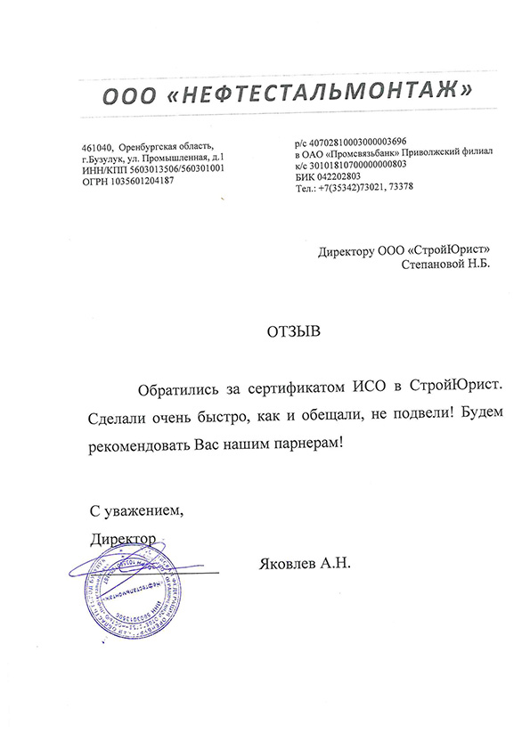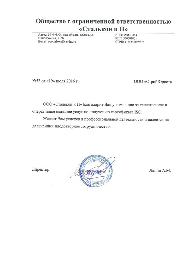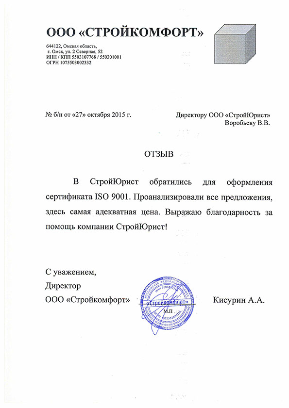 Отзывы клиентов "СтройЮрист" по ISO в Магадане
