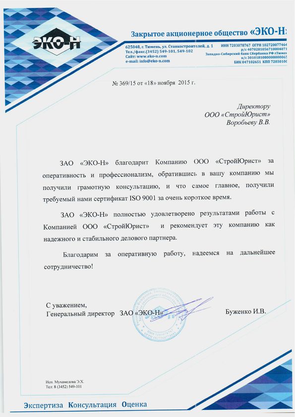 Отзывы клиентов "СтройЮрист" по ISO в Магадане