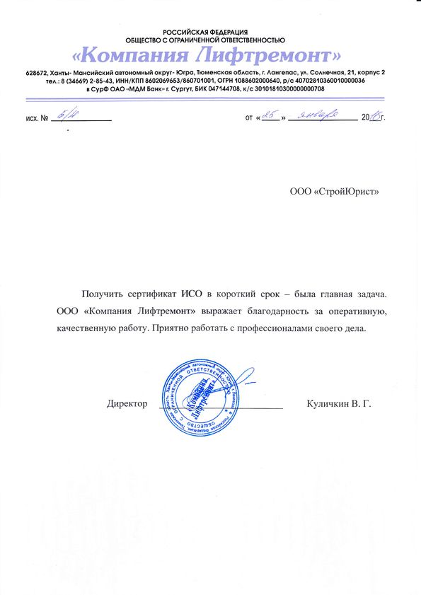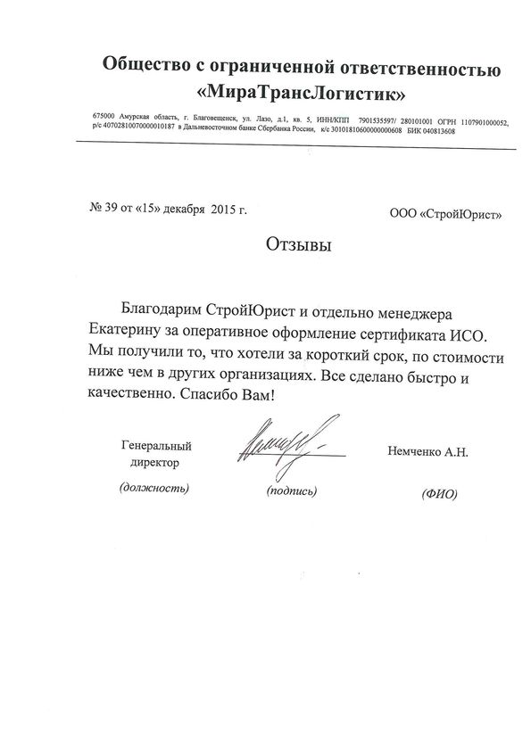 Отзывы клиентов "СтройЮрист" по ISO в Магадане