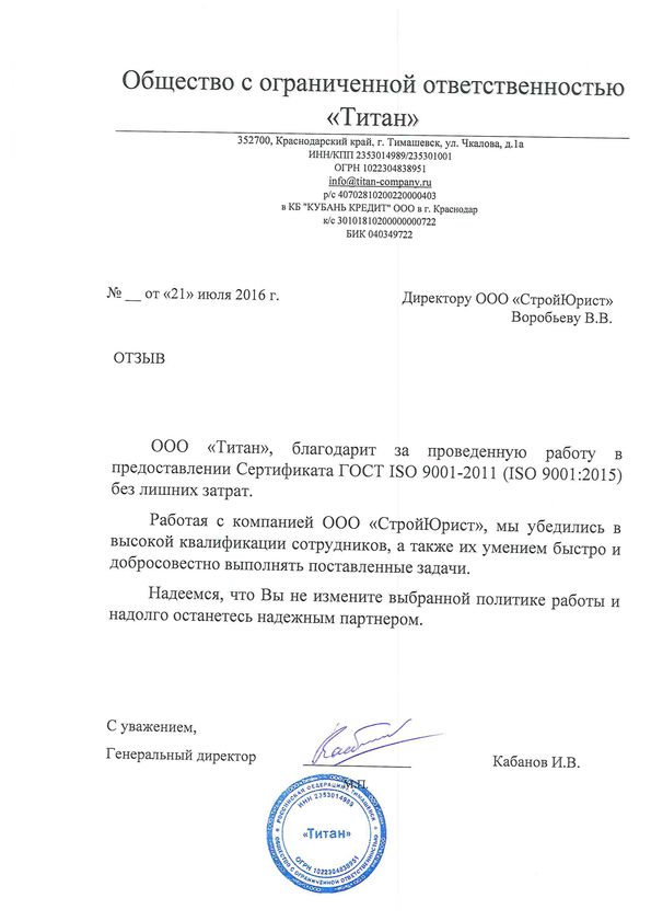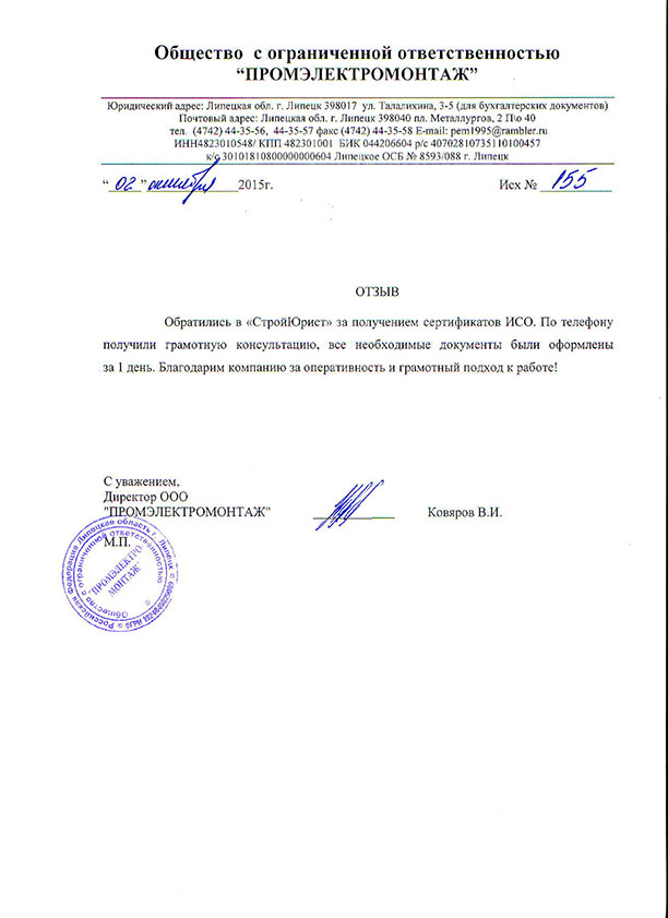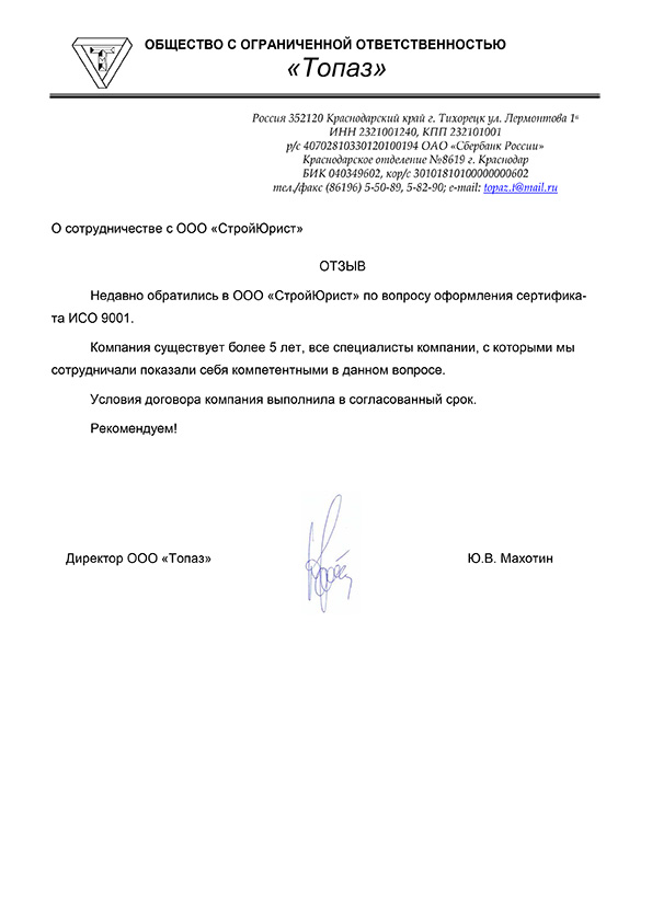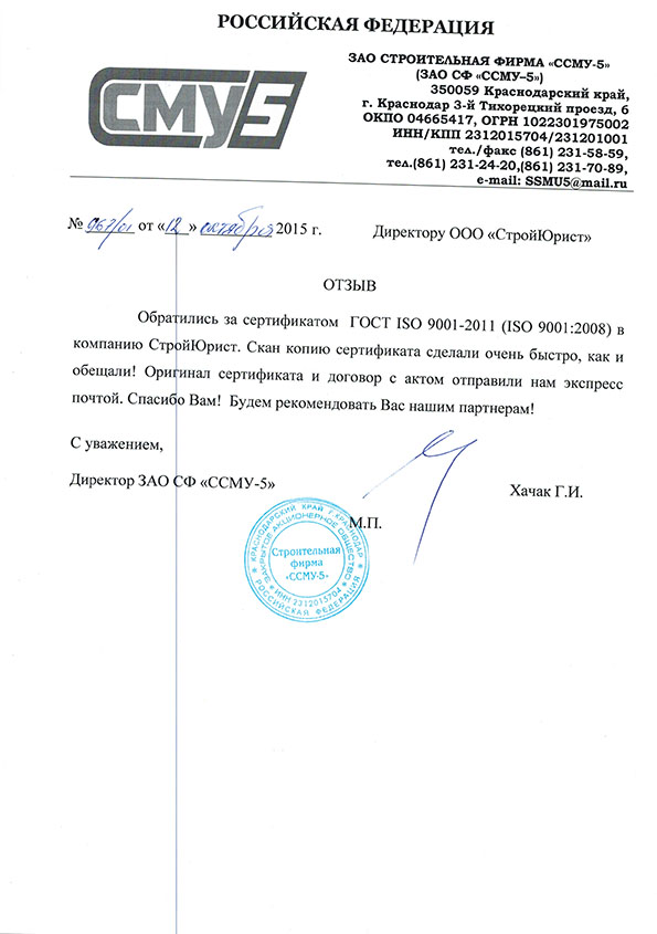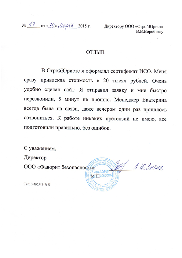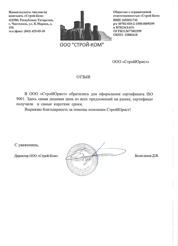 Отзывы клиентов "СтройЮрист" по ISO в Магадане