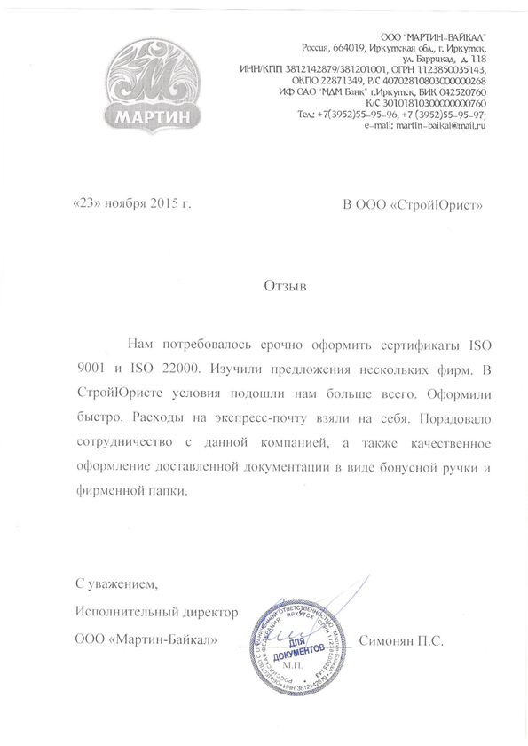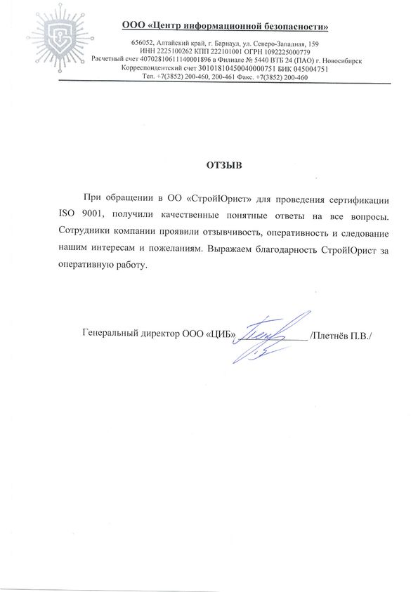 Отзывы клиентов "СтройЮрист" по ISO в Магадане