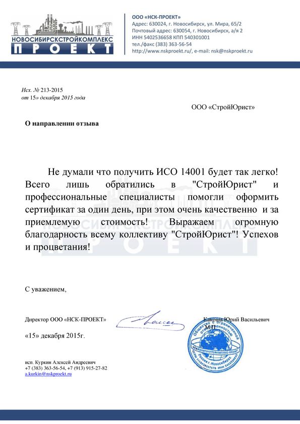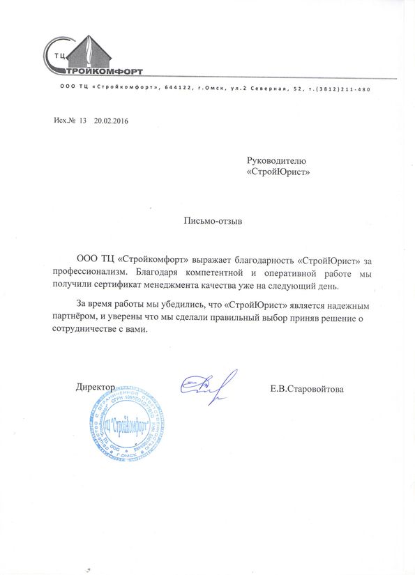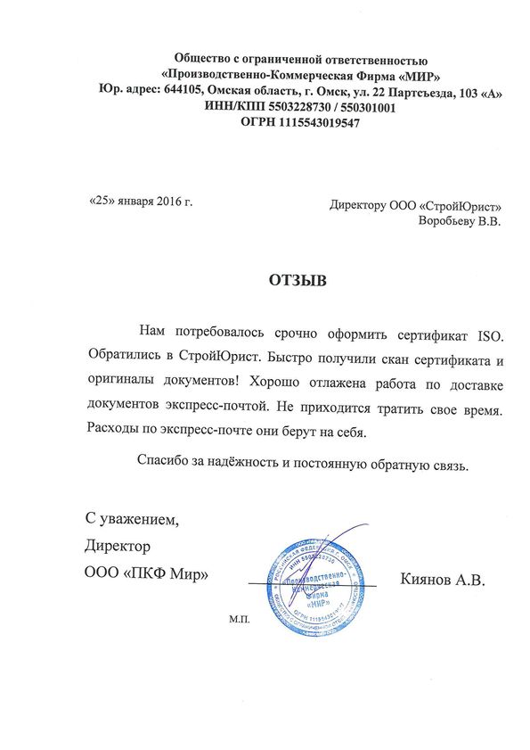 Отзывы клиентов "СтройЮрист" по ISO в Магадане