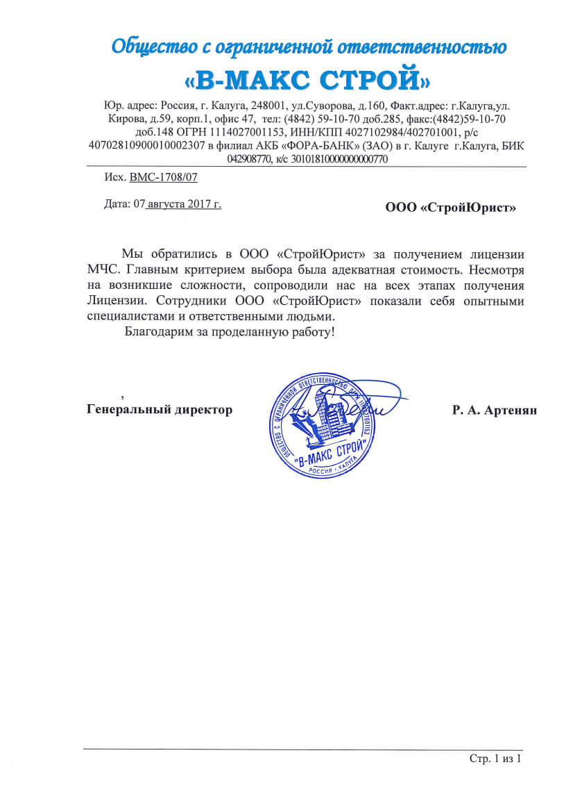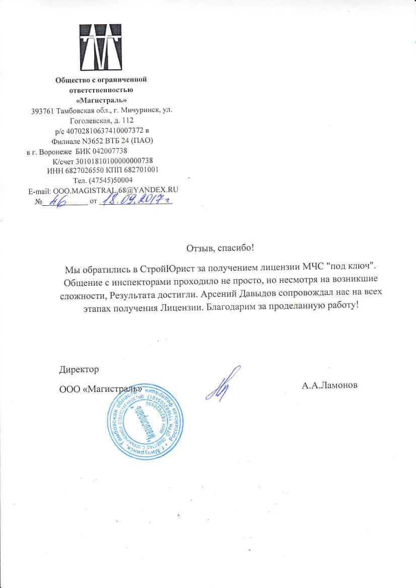 Отзывы клиентов "СтройЮрист" по лицензированию МЧС в Магадане