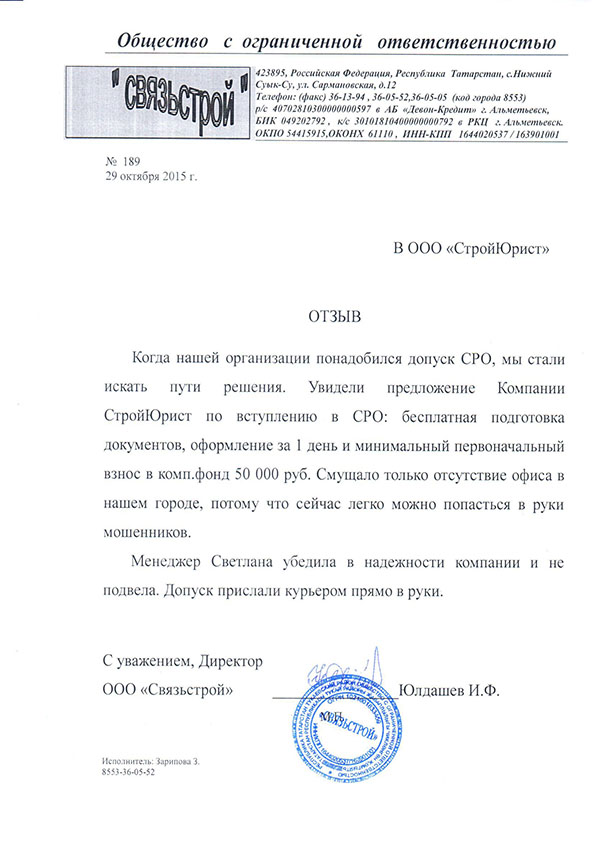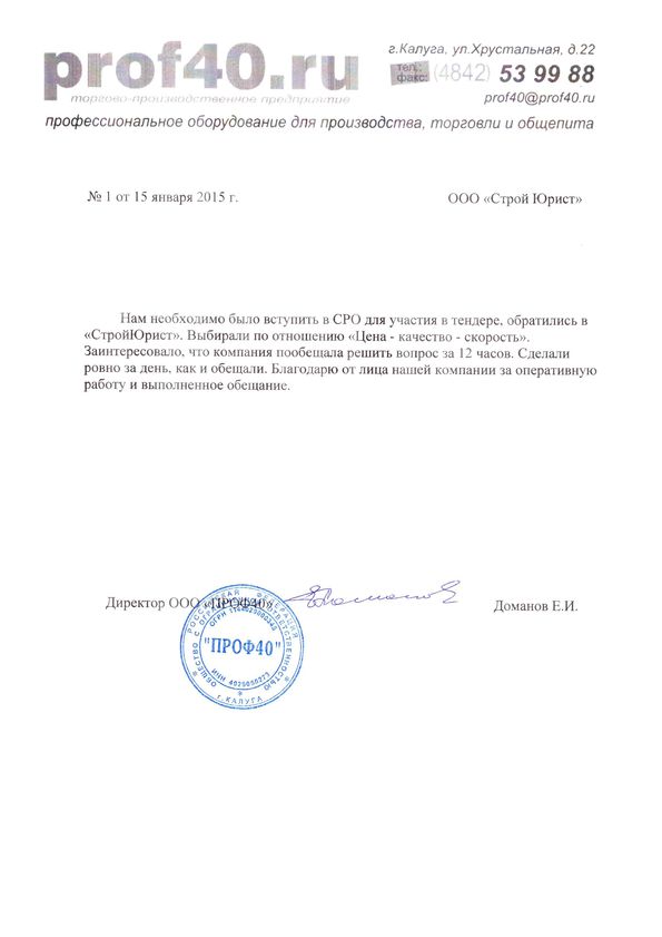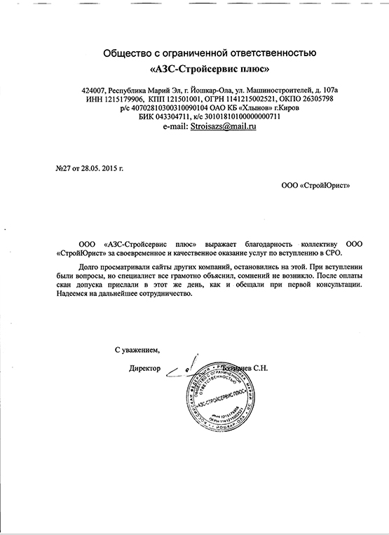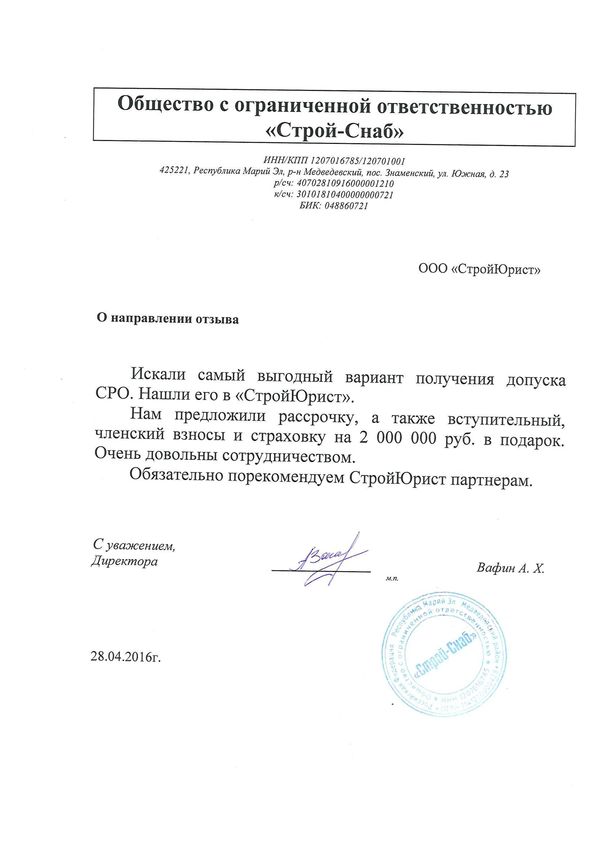 Отзывы клиентов "СтройЮрист" по вступлению в СРО в Магадане