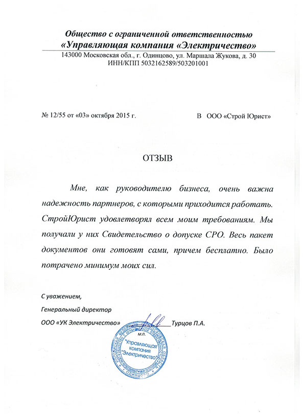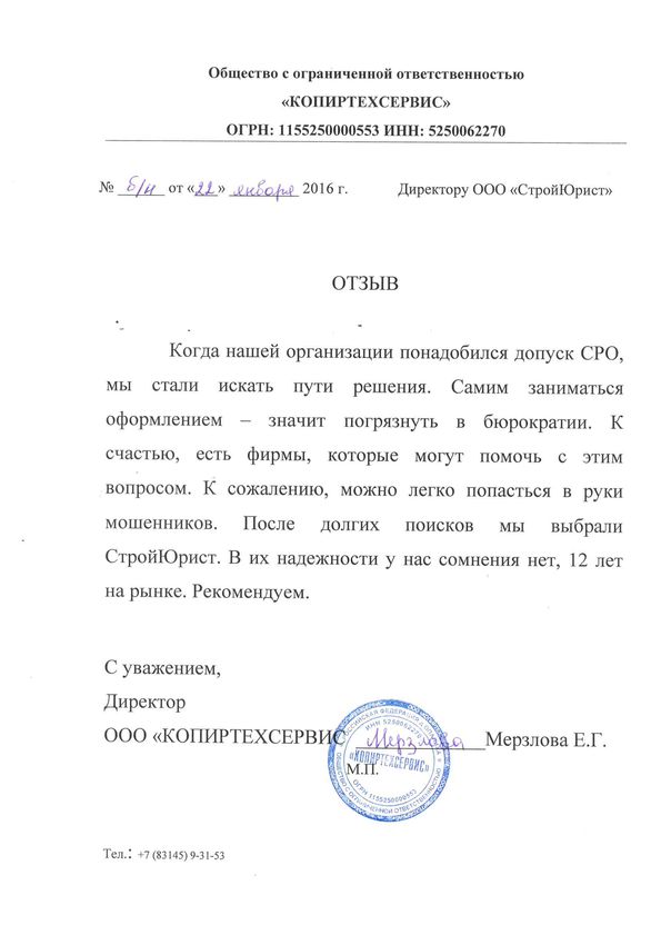 Отзывы клиентов "СтройЮрист" по вступлению в СРО в Магадане