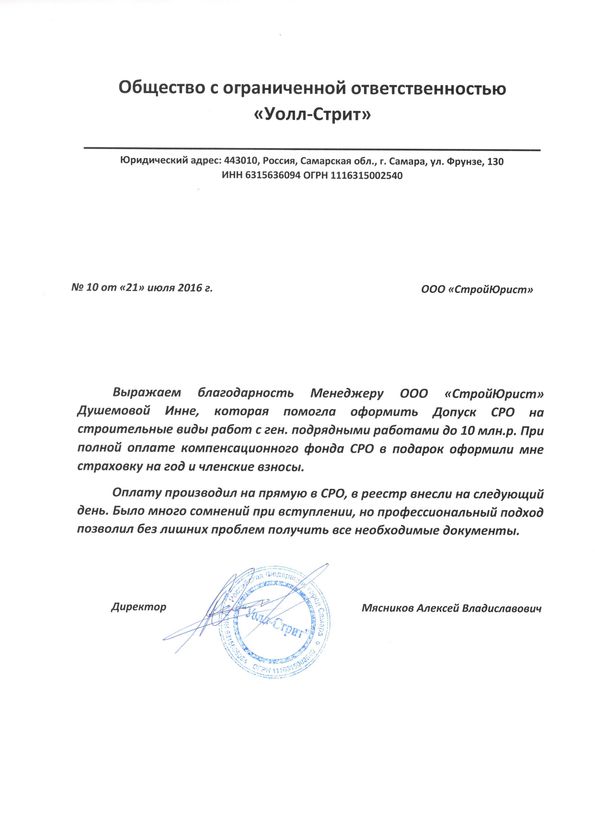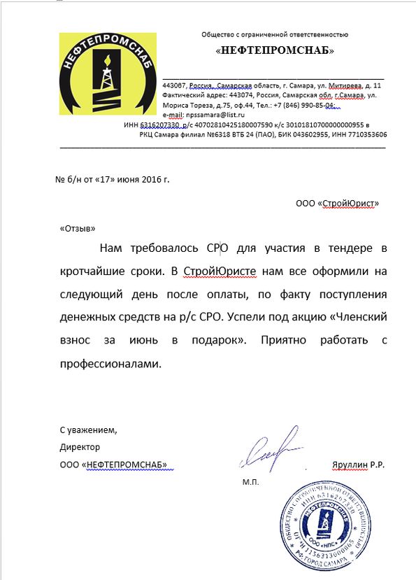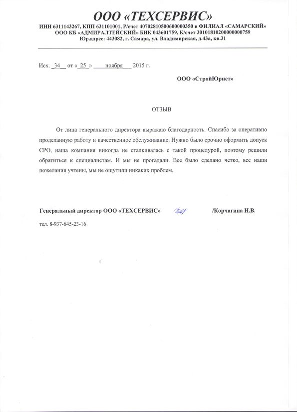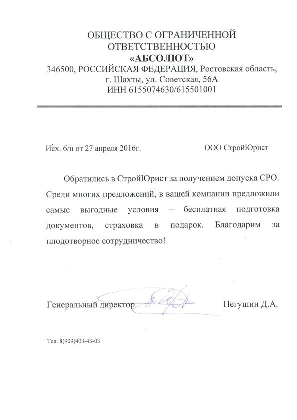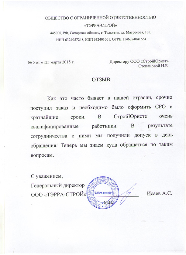 Отзывы клиентов "СтройЮрист" по вступлению в СРО в Магадане
