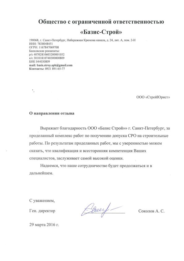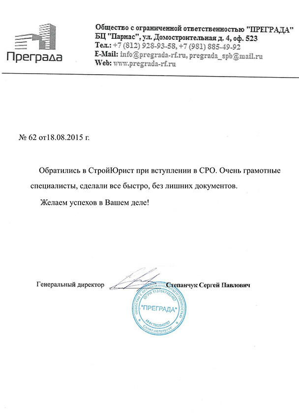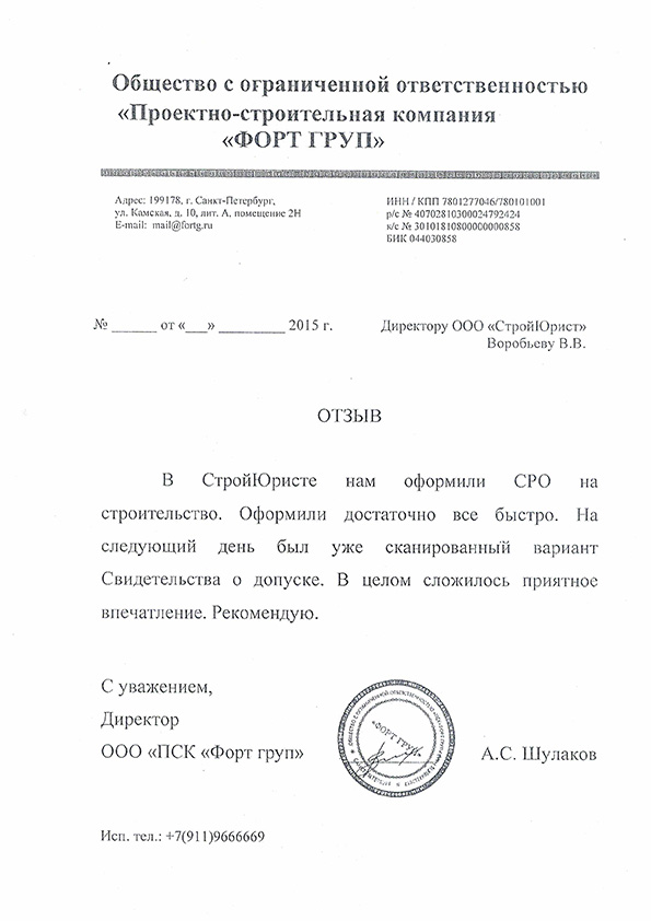 Отзывы клиентов "СтройЮрист" по вступлению в СРО в Магадане