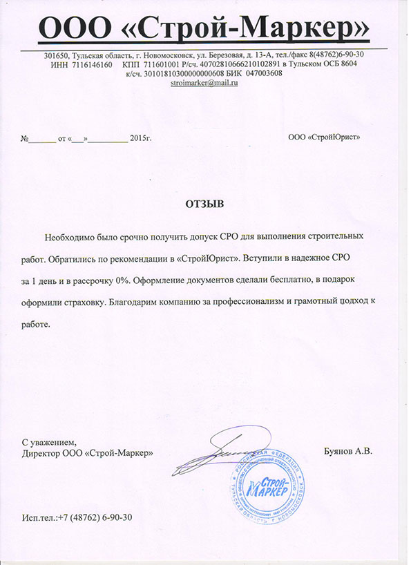 Отзывы клиентов "СтройЮрист" по вступлению в СРО в Магадане