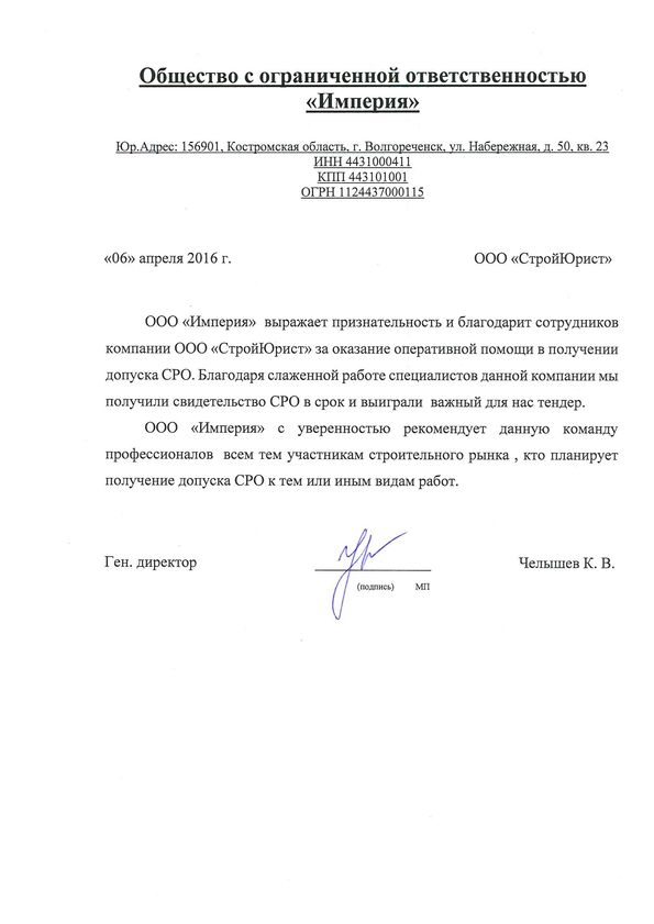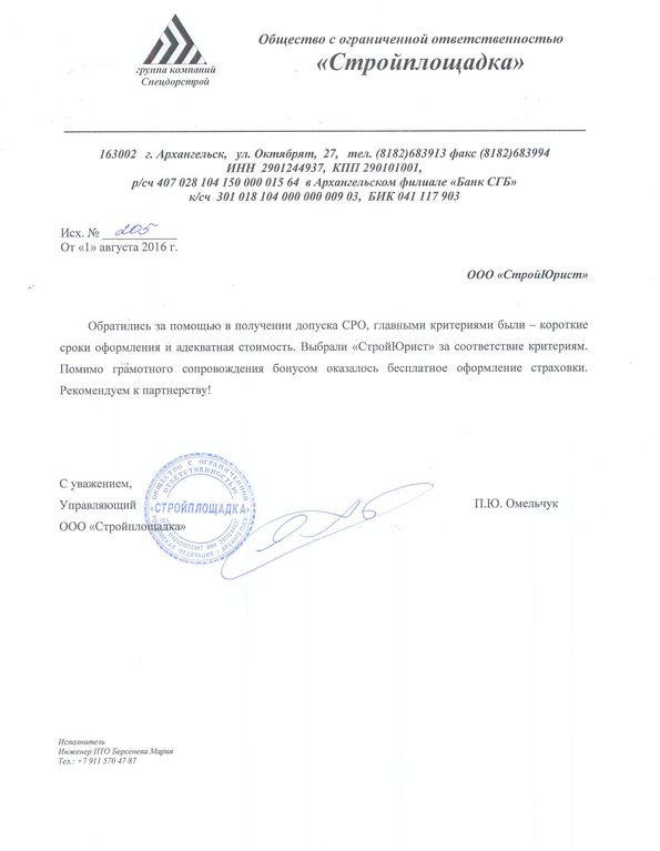 Отзывы клиентов "СтройЮрист" по вступлению в СРО в Магадане