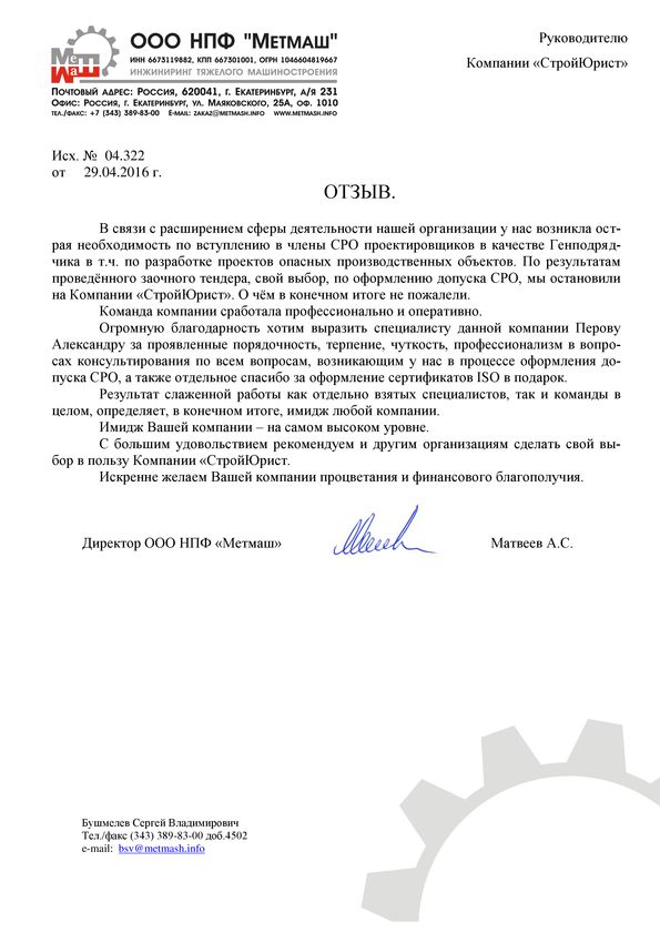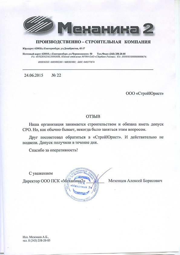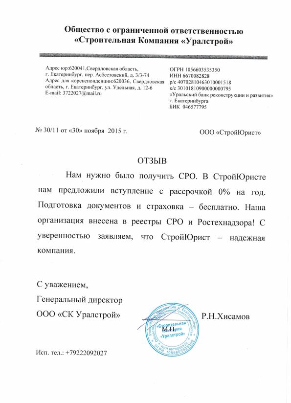 Отзывы клиентов "СтройЮрист" по вступлению в СРО в Магадане