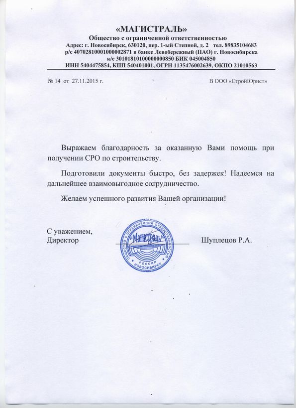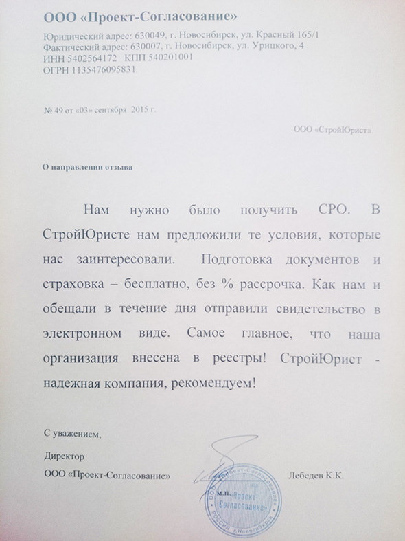 Отзывы клиентов "СтройЮрист" по вступлению в СРО в Магадане