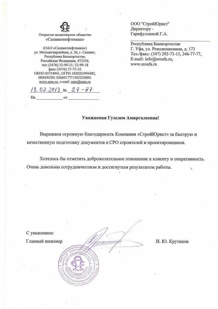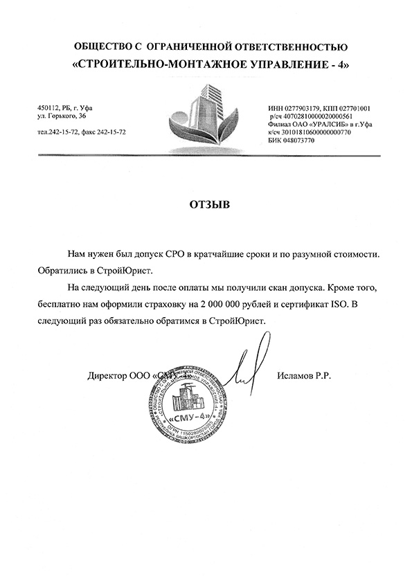 Отзывы клиентов "СтройЮрист" по вступлению в СРО в Магадане