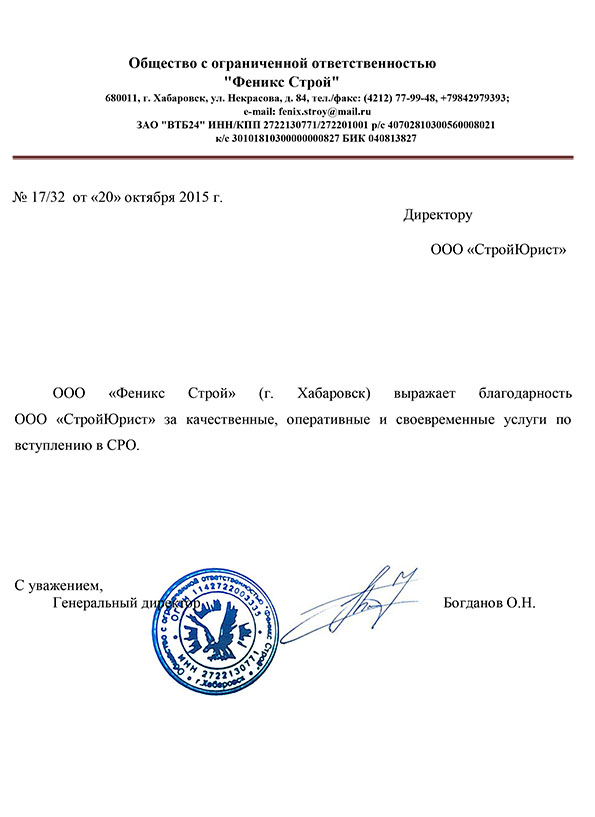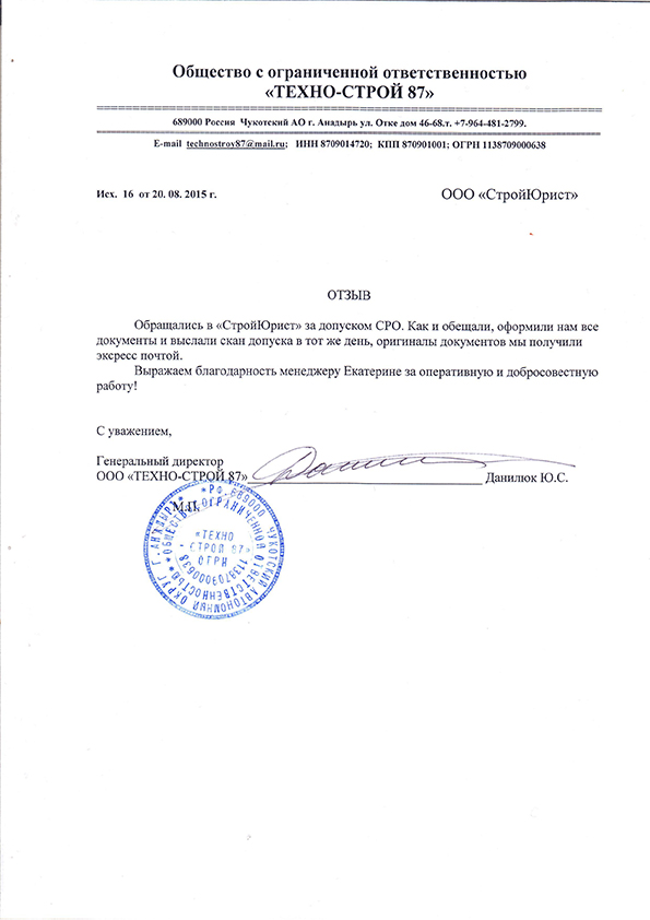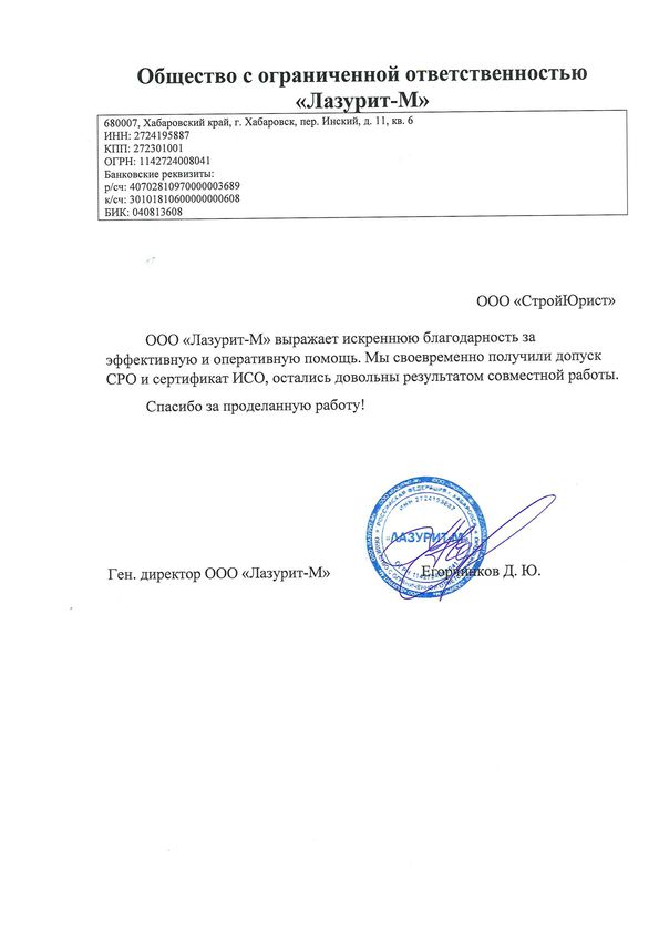 Отзывы клиентов "СтройЮрист" по вступлению в СРО в Магадане