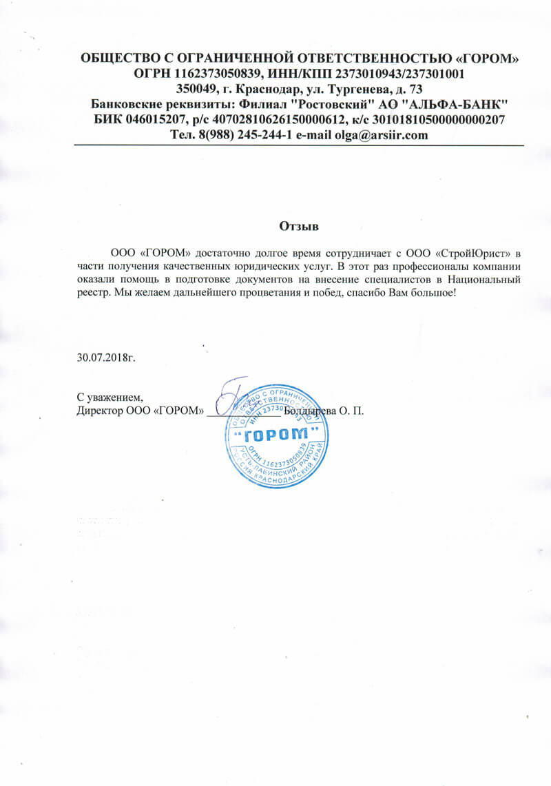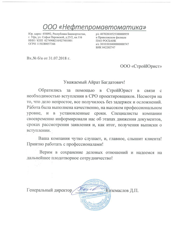 Отзывы клиентов "СтройЮрист" по вступлению в СРО в Магадане